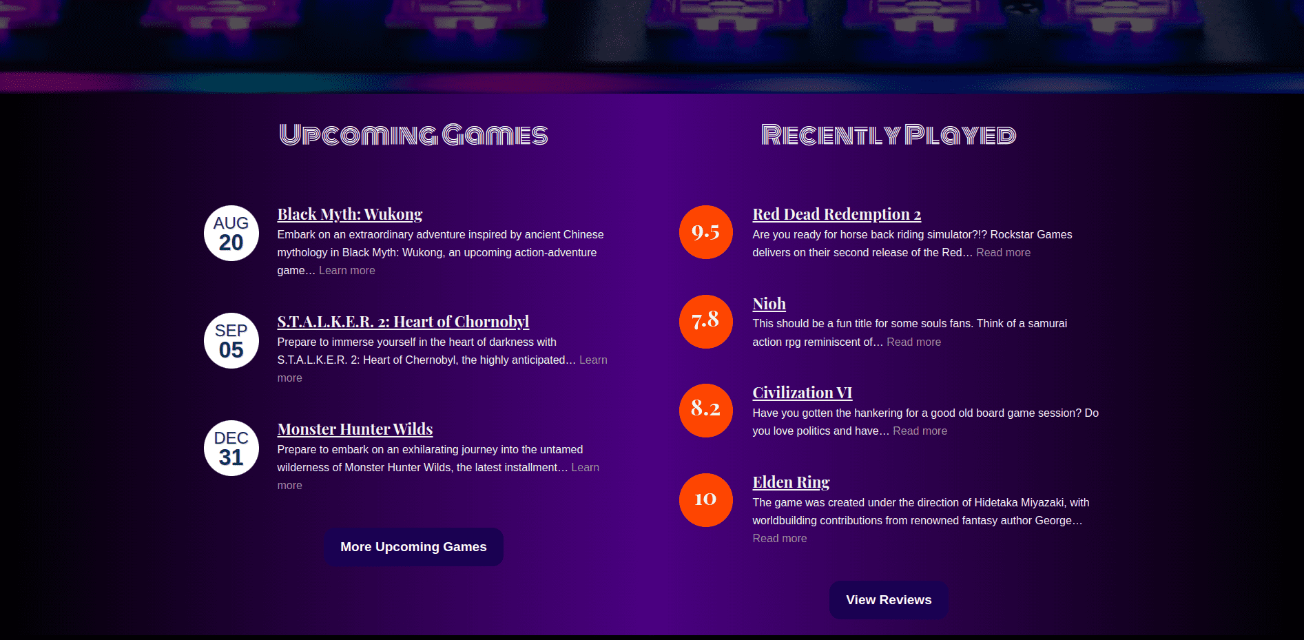 • Organized Content Management: Custom post types such as upcoming games, ratings, reviews, and favorites streamline content management.